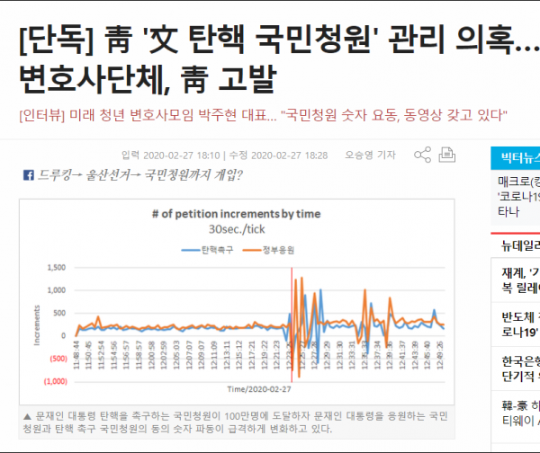 [단독] 靑 '文 탄핵 국민청원' 관리 의혹… 변호사단체, 靑 고발[출처] 청와대고발, 문탄핵 '국민청원' 백만돌파 클릭수 조작|작성자 펜포토이야기