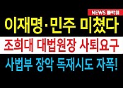 '속보) 이재명·민주 눈깔 돌아갔다, 조희대 대법원장 사퇴요구 난리났다! 사법부 장악 노골화, 독재시도 동반…