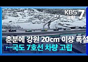 춘분에 강원 20cm 이상 폭설…국도 7호선 차량 고립 / KBS 2024.03.20.